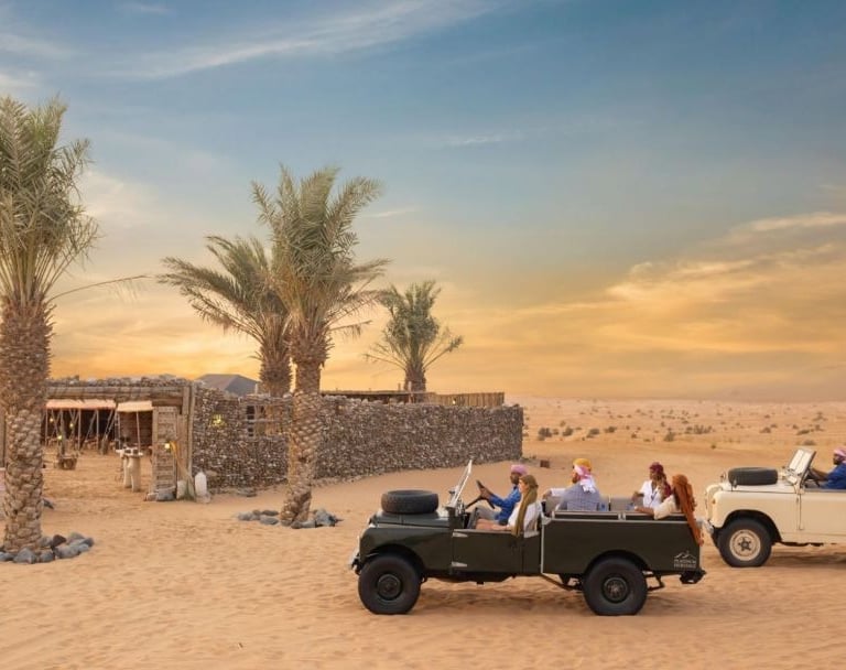 Descubre el safari por el desierto más emblemático de Dubái y explora sus impresionantes dunas a bordo de un Land Rover vintage de los años 50, símbolo del patrimonio de la ciudad. Aventúrate en la Reserva de Conservación del Desierto de Dubái para avistar animales nativos como el órix árabe y visita un bosque de árboles Ghaf para capturar impresionantes fotografías. Aprende sobre el ecosistema del desierto y las estrategias de supervivencia beduinas antes de disfrutar de un espectacular show de cetrería. Contempla la puesta de sol sobre las dunas y sumérgete en la cultura local en un auténtico campamento beduino, donde podrás degustar café árabe, hacer pan, pintarte con henna, montar en camello y disfrutar de espectáculos tradicionales. Concluye la experiencia con una deliciosa cena de cuatro tiempos y relájate en un acogedor Majlis árabe con la opción de probar shisha.